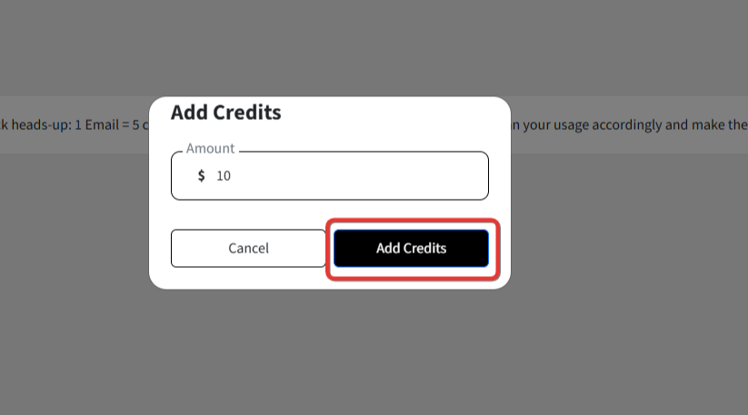 • After entering the desired amount, click the "Add Credits" button within the modal.