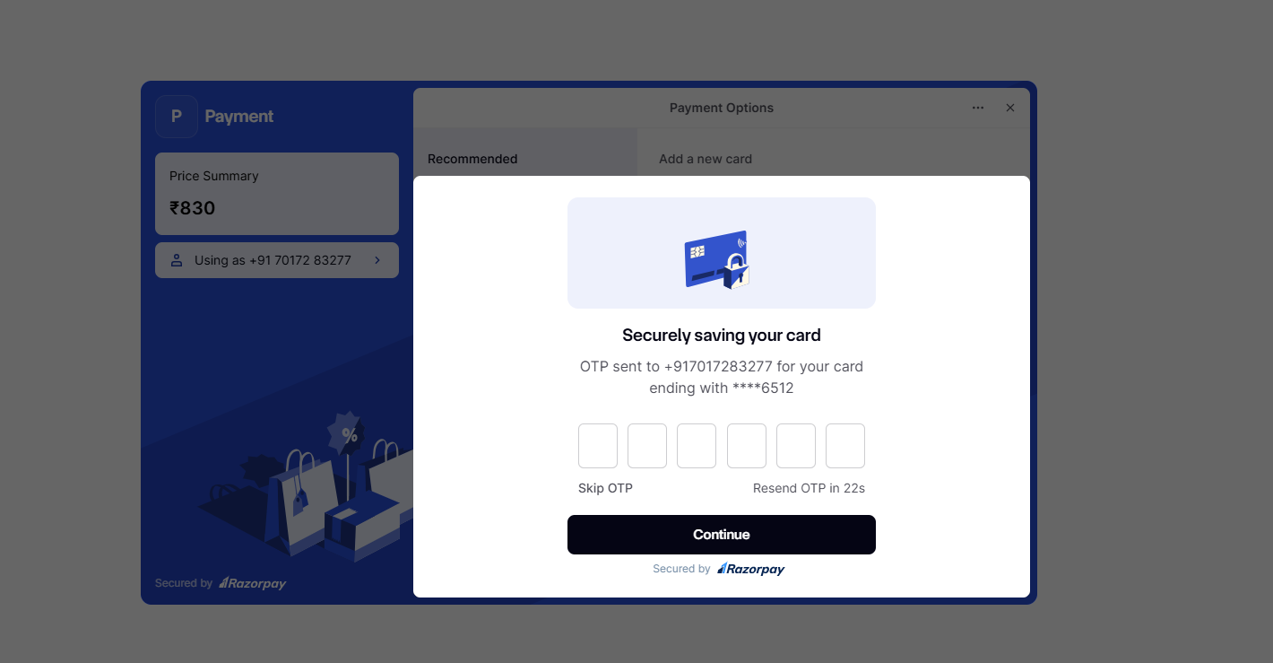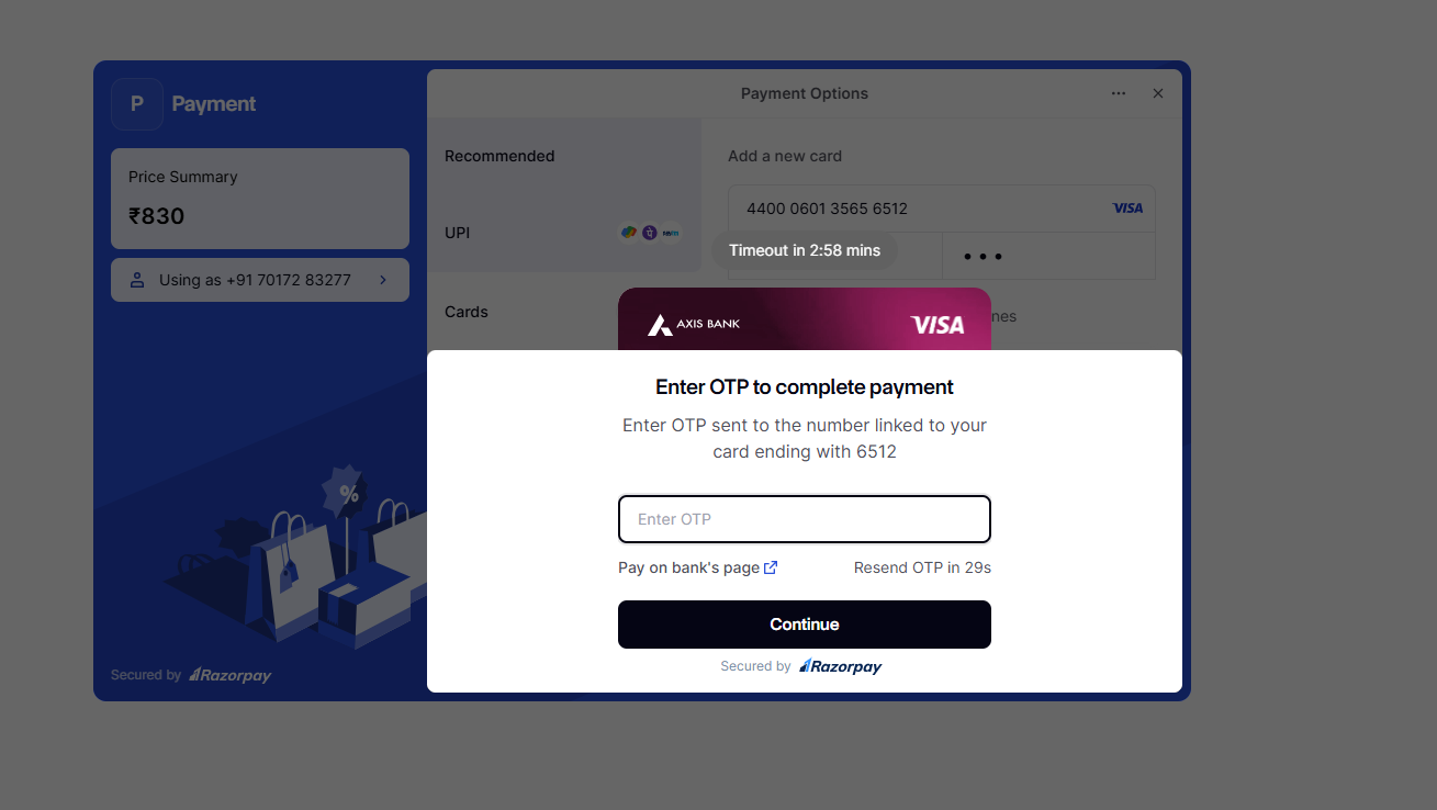 • You may need to complete an additional authentication step, such as entering an OTP (One-Time Password) sent to your registered mobile number or email associated with your bank/card.