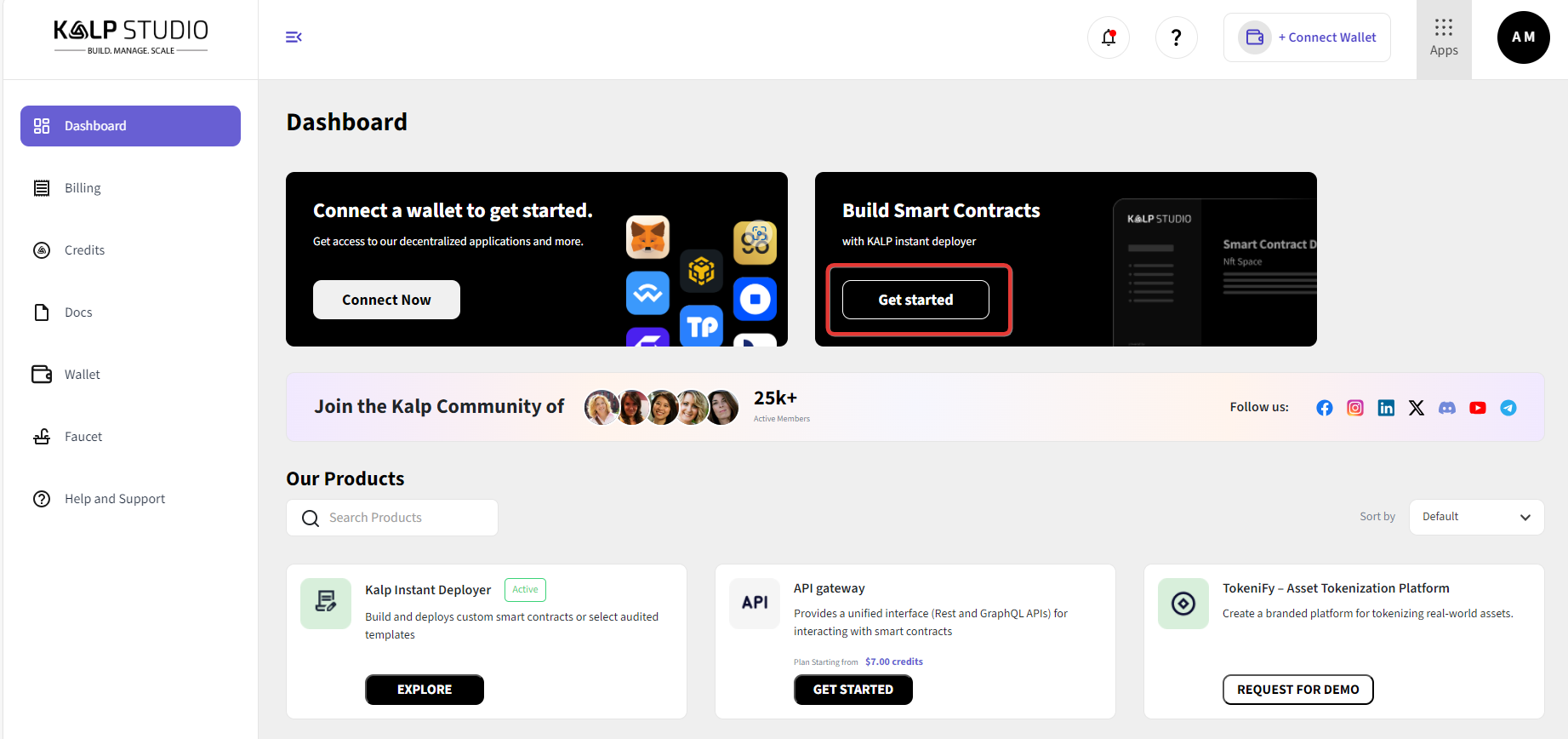 Navigate to the Kalp Studio login page and enter your credentials to access your dashboard. Click on Build Smart Contract.