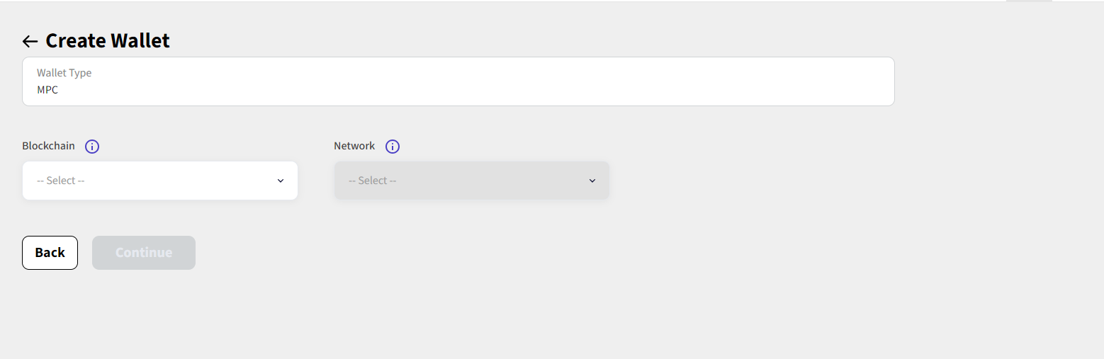 After selecting the wallet type, you will be asked to choose the blockchain and network for your wallet.