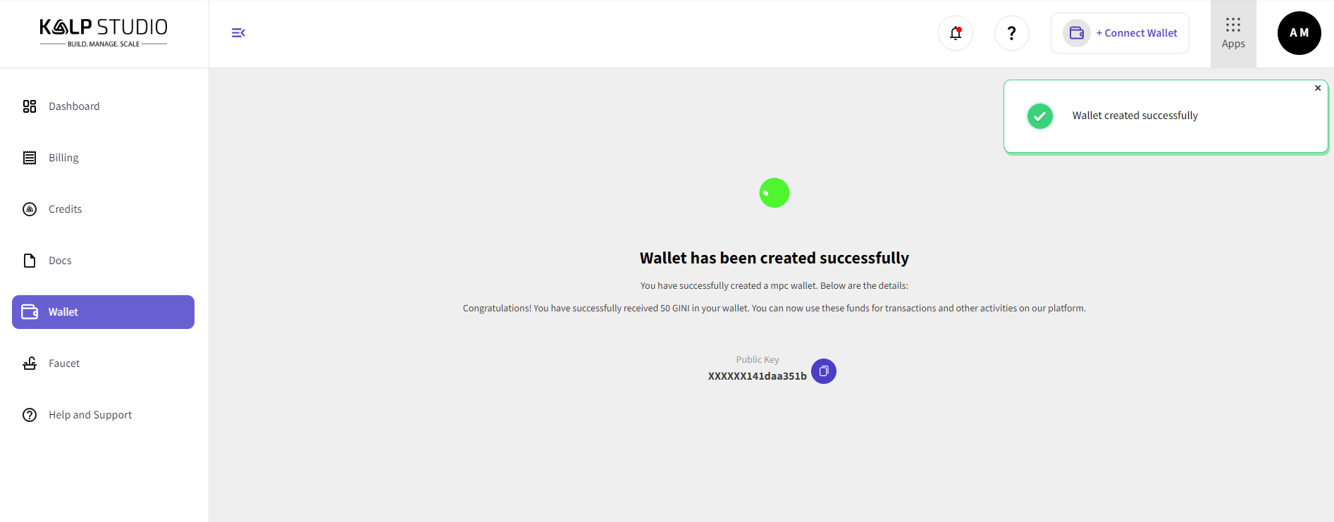 A confirmation message will appear, indicating that the wallet has been created successfully.