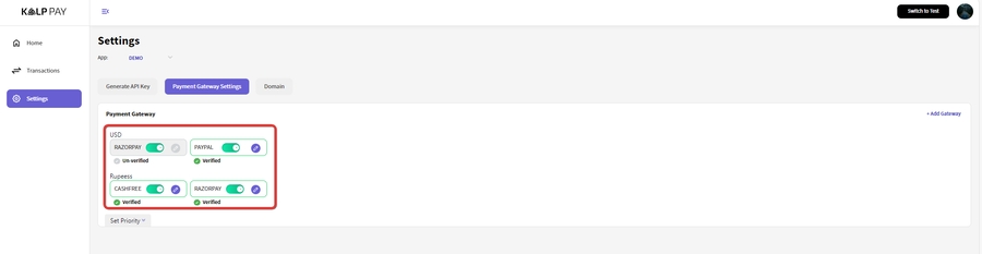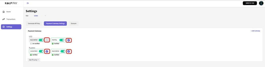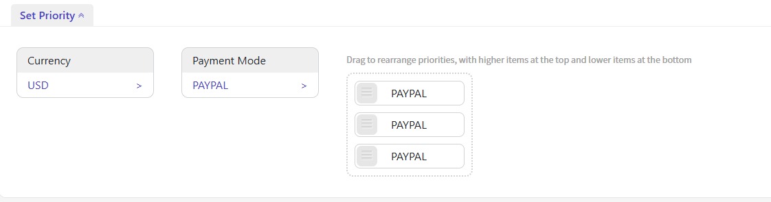 Click on "Set Priority" at the bottom of the Payment Gateway section.