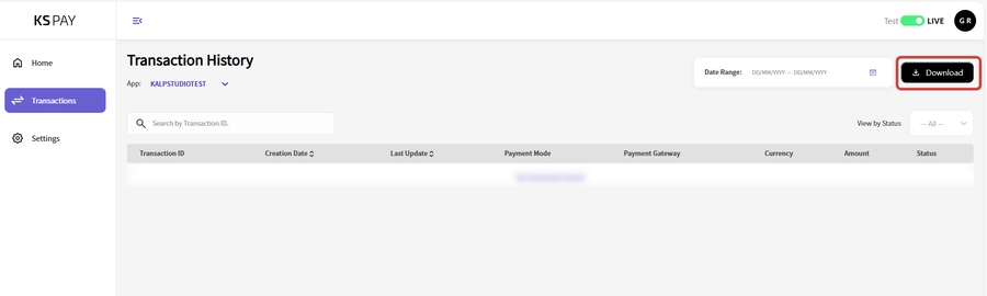 2. If needed, you can download the transaction history by clicking on the Download button in the top-right corner.