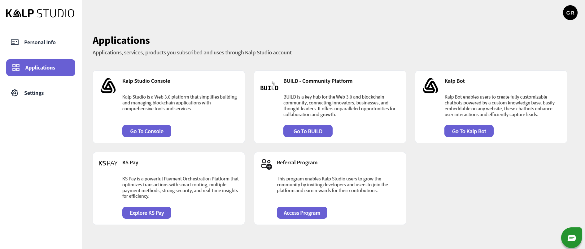 • On the left-hand side of the screen, you'll find a navigation menu. This menu contains various options, including "Personal Info," "Applications," and "Settings”, as shown in the screenshot below.