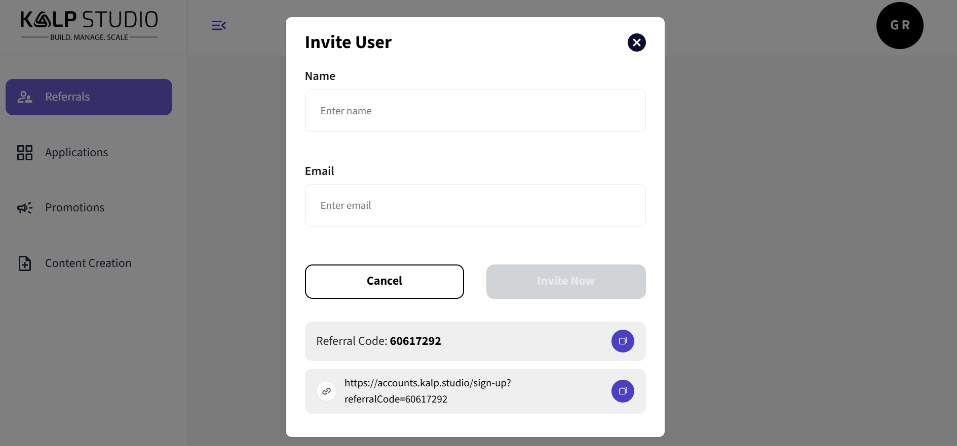 • Number Of Users Invited: This displays the number of users you have invited to join Kalp Studio through your referral program.