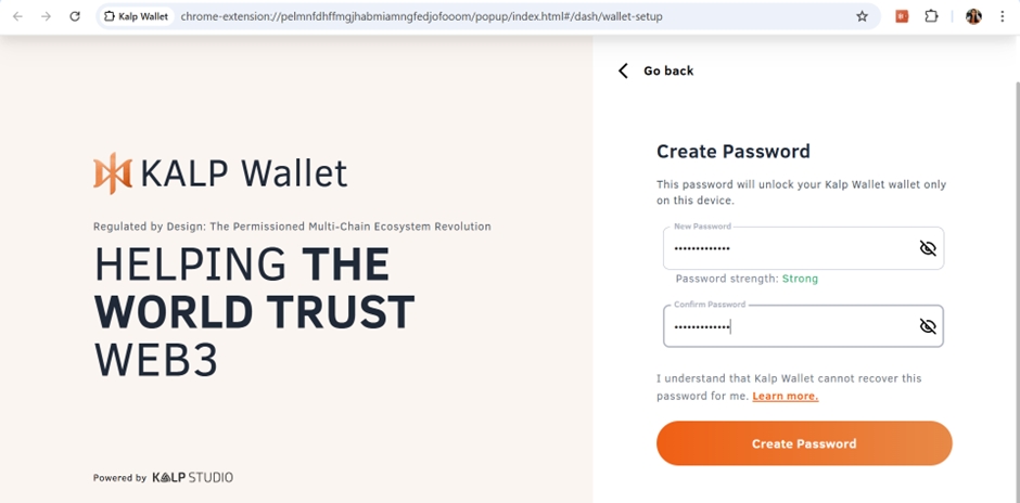 The Kalp Wallet Extension is a secure and user-friendly gateway to the Kalp blockchain ecosystem, designed to simplify your Web3 experience. Effortlessly manage digital assets, interact with decentralized applications, and perform cross-chain transactions with ease. Built with robust security features and optimized for Kalp blockchain compliance, the Kalp Wallet Extension ensures a smooth, efficient, and trustworthy experience for users exploring the decentralized world.