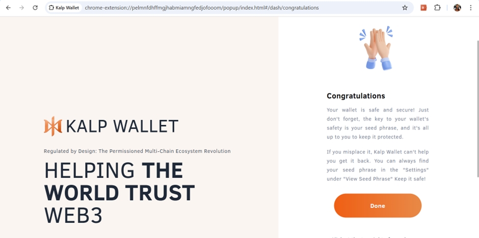 Once installed, the Kalp Wallet icon appeared in the browser toolbar, ready to launch.