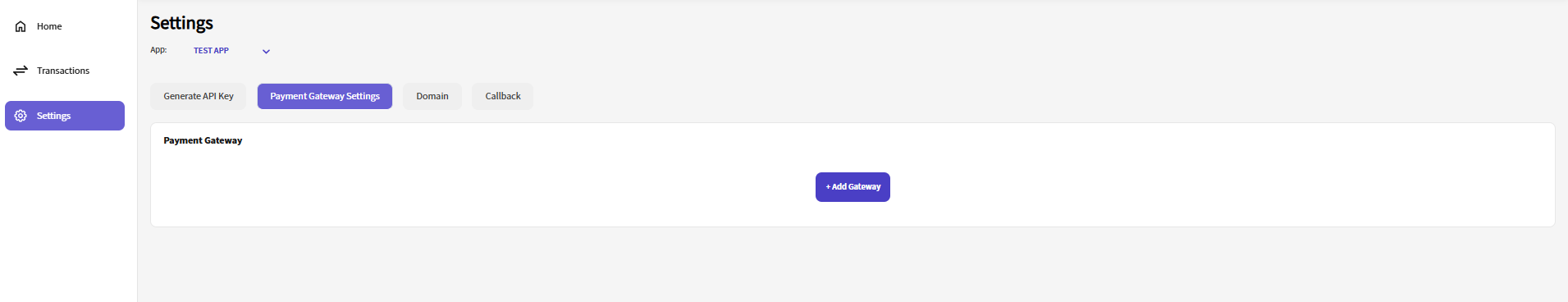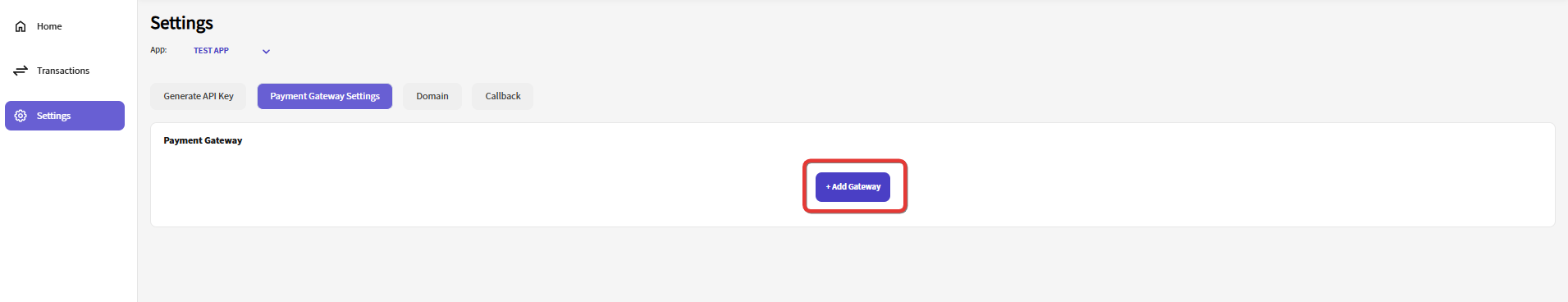 Within the "Settings" section, locate and click the "Payment Gateway Settings" tab.