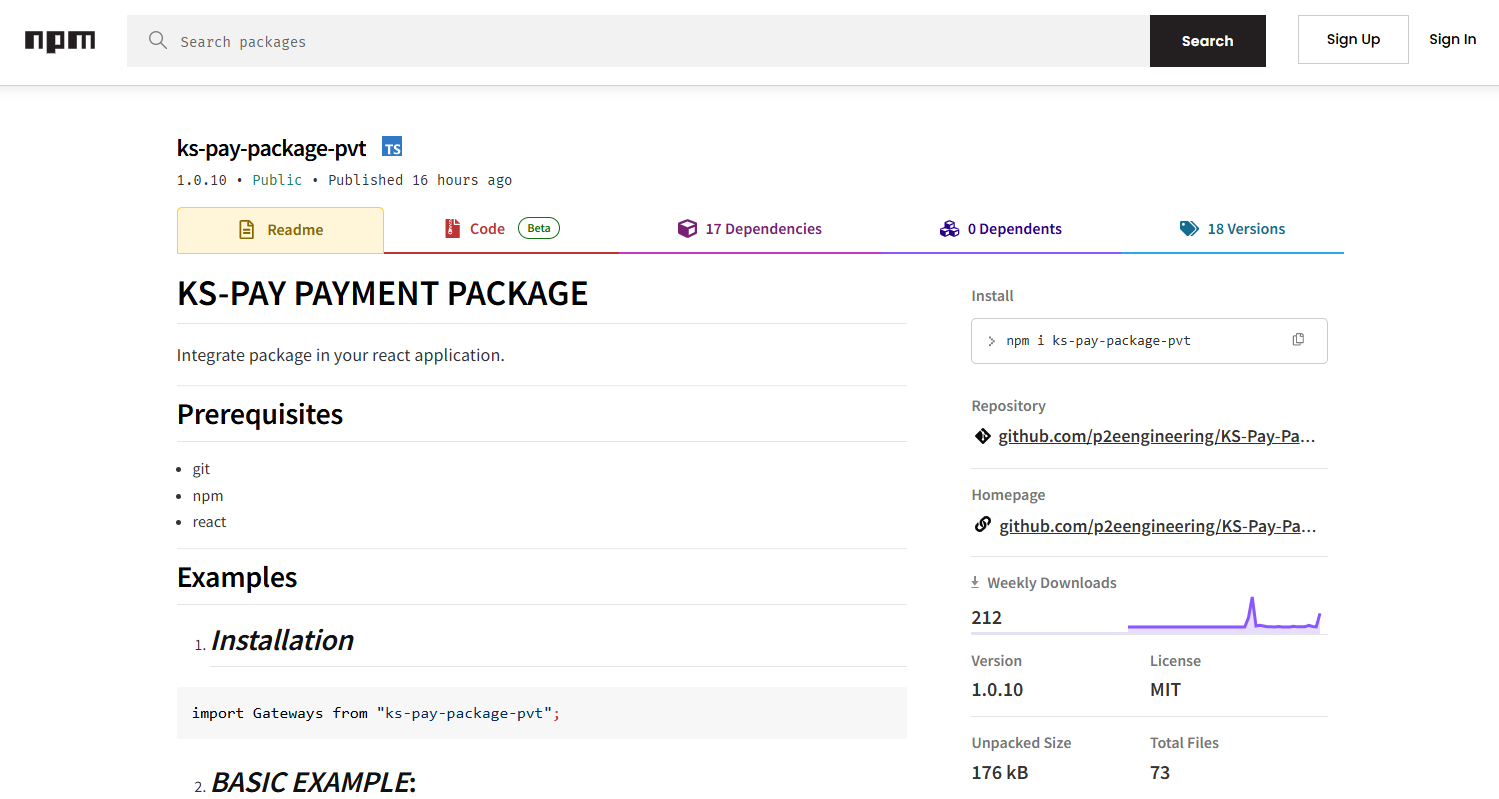 To complete this step, you'll need to integrate the provided SDK into your application. You can find more information on the Integration document (in our example, "KS-PAY PAYMENT PACKAGE") by clicking on it. This document contains instructions and the code to install and utilize the package, and also links to the NPM page to further understand the package information.