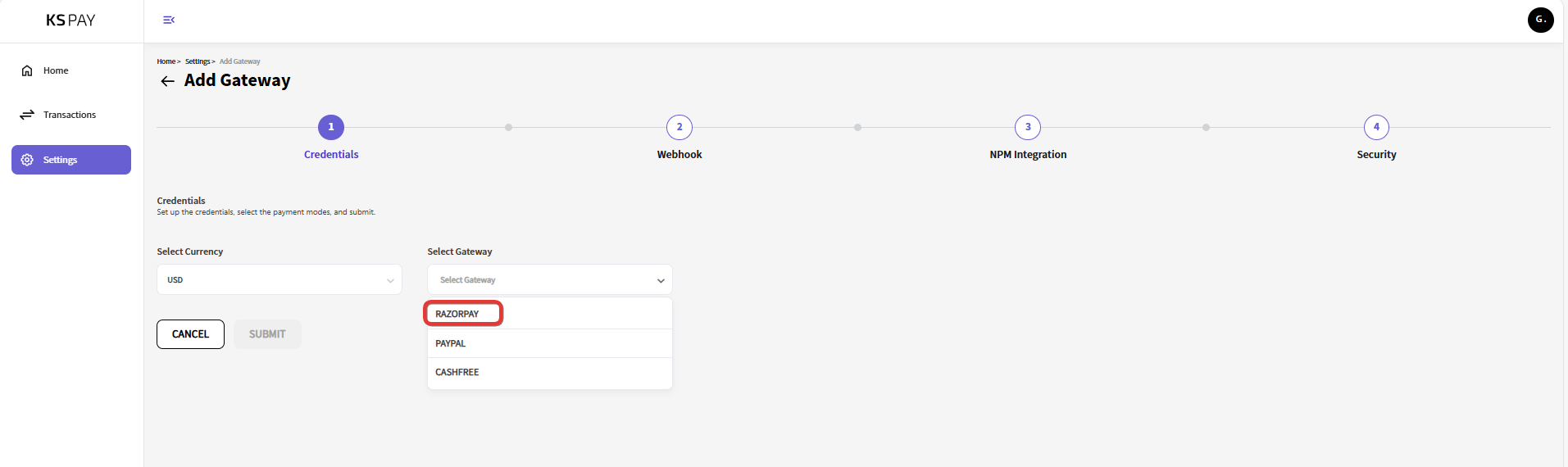 Step 5: Obtain Webhook URL and Secret from KS Pay