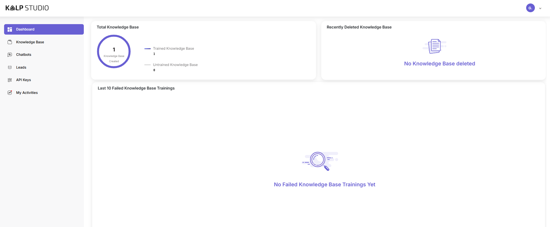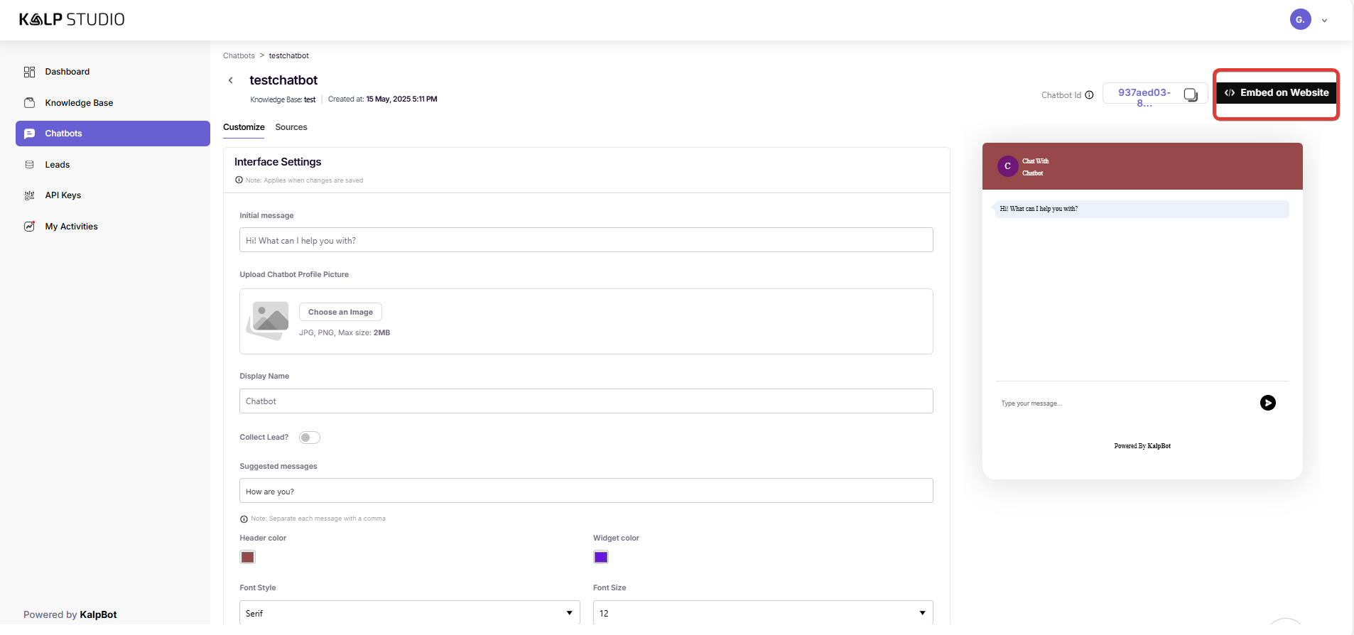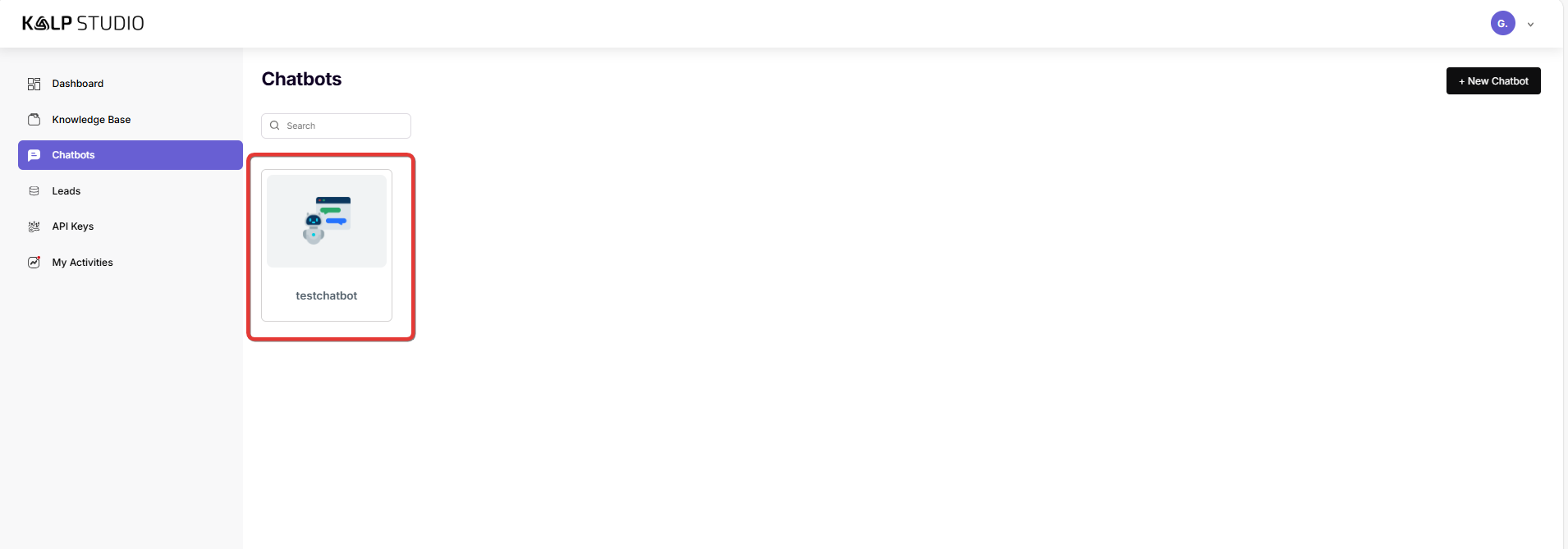 • At least one chatbot created and configured within Kalp Studio.