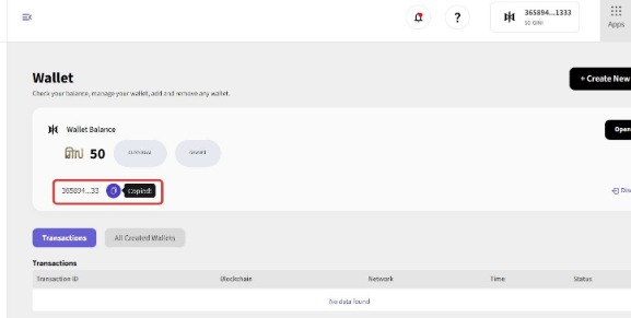 After a few minutes, return to your Kalp Wallet by clicking the Kalp Wallet option in the dashboard’s left-hand menu, as shown in the screenshot below. Your updated balance should now reflect a newly added Gini token.