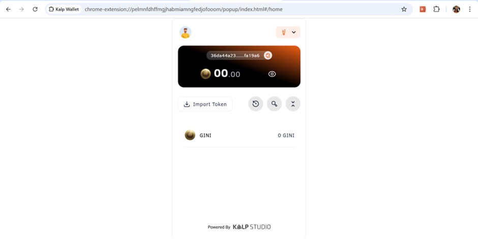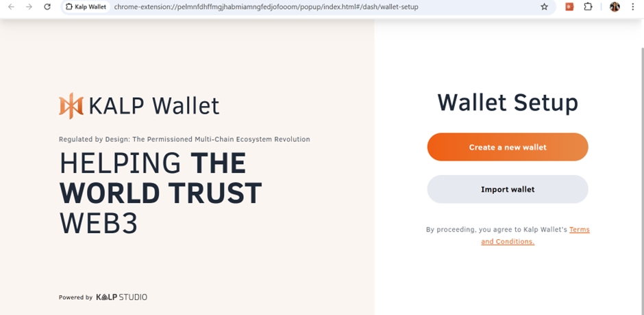 Open your browser and click on the Kalp Wallet icon in the toolbar.