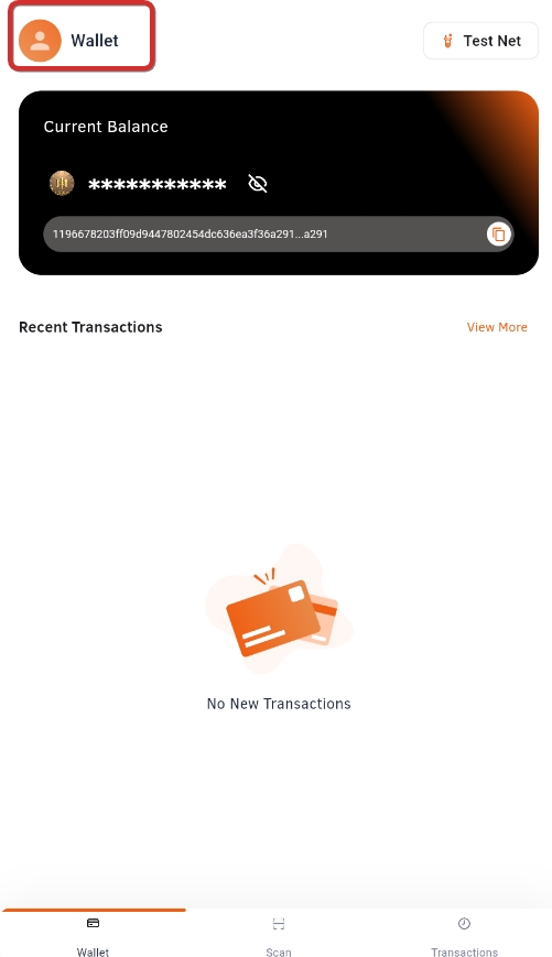 Open your Kalp Wallet app. Navigate to the settings menu.