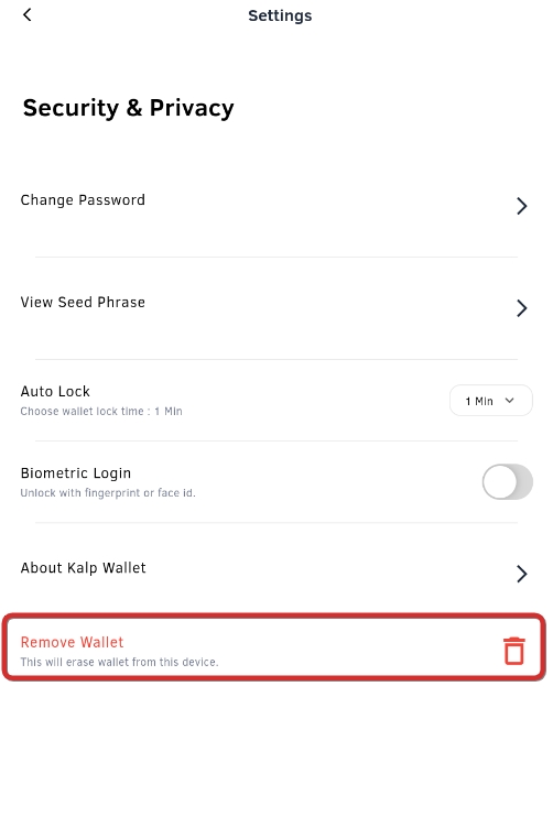 Within the settings, scroll down to find the "Security & Privacy" section. You'll find an option labelled "Remove Wallet," often accompanied by a trash can icon. Tap this option.