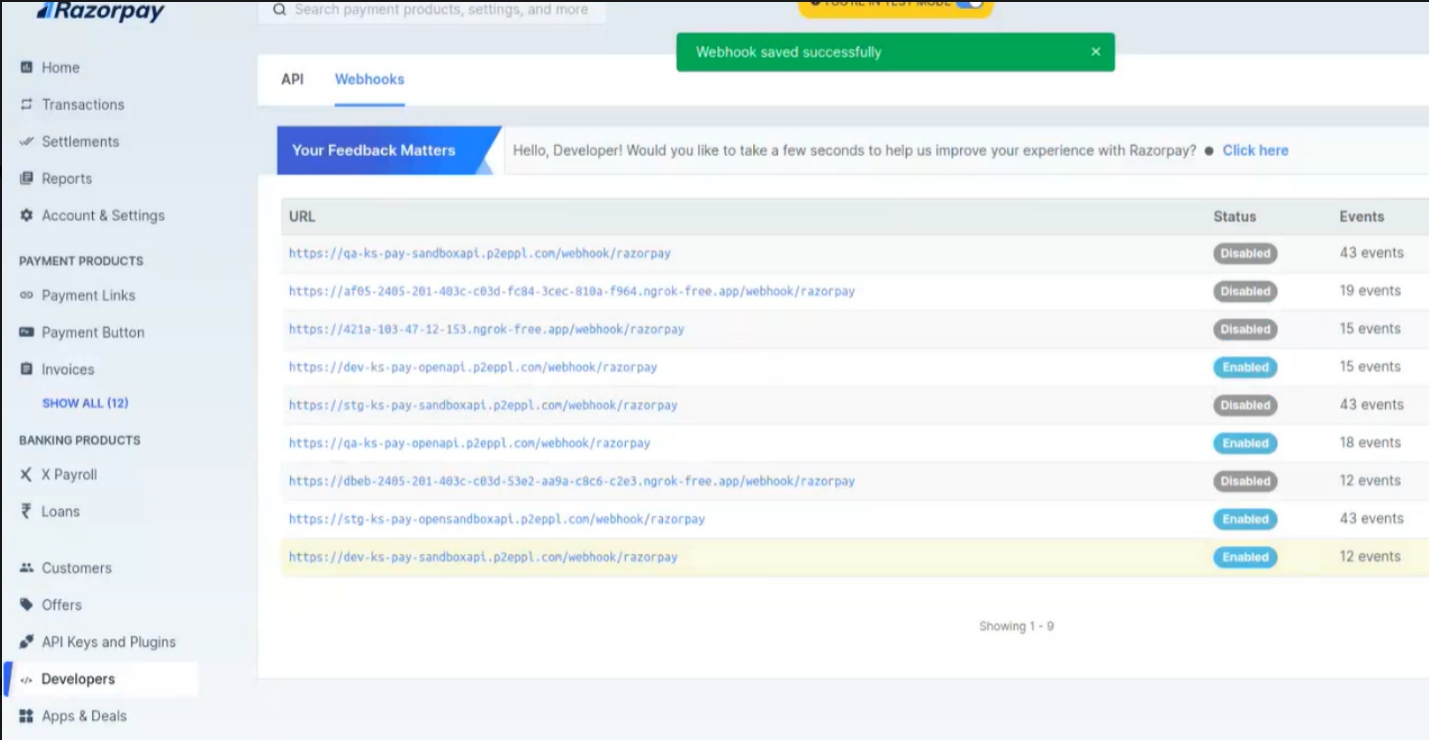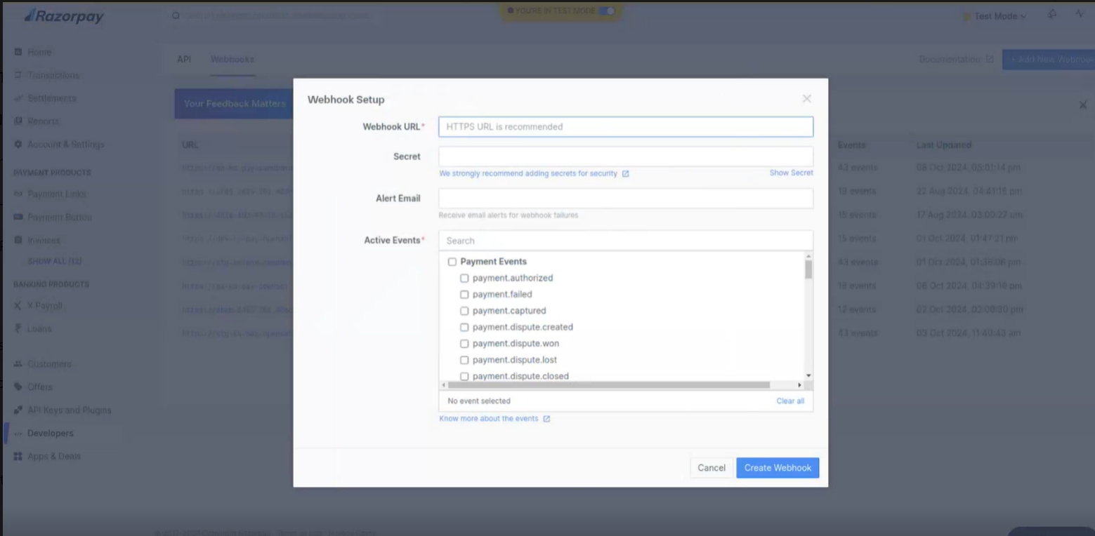 Step 6: Configure the Webhook in Your Payment Gateway (Razopay)