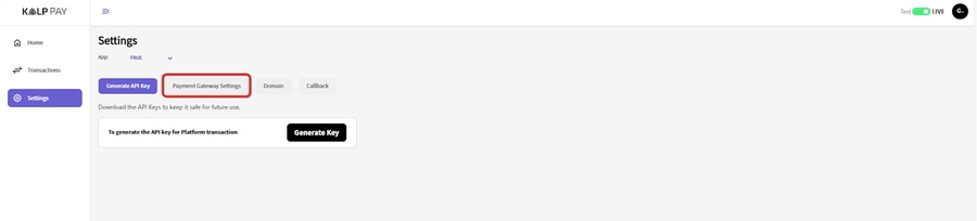Navigate to "Settings" > "Payment Gateway Settings"