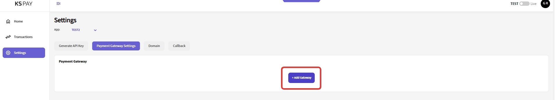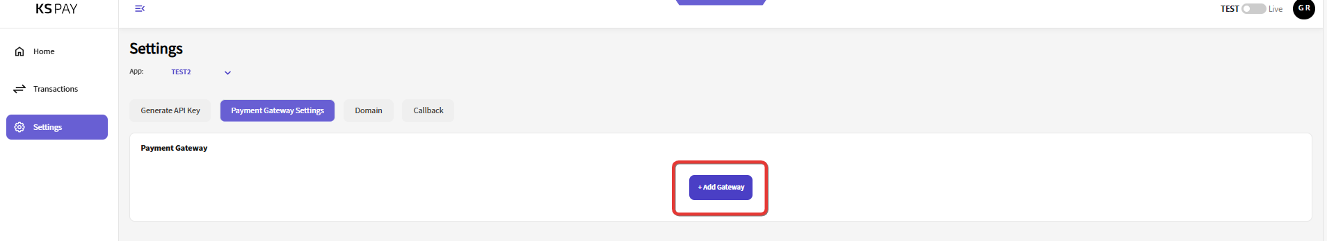 Click on the "+ Add Gateway" button, as highlighted in the screenshot below.