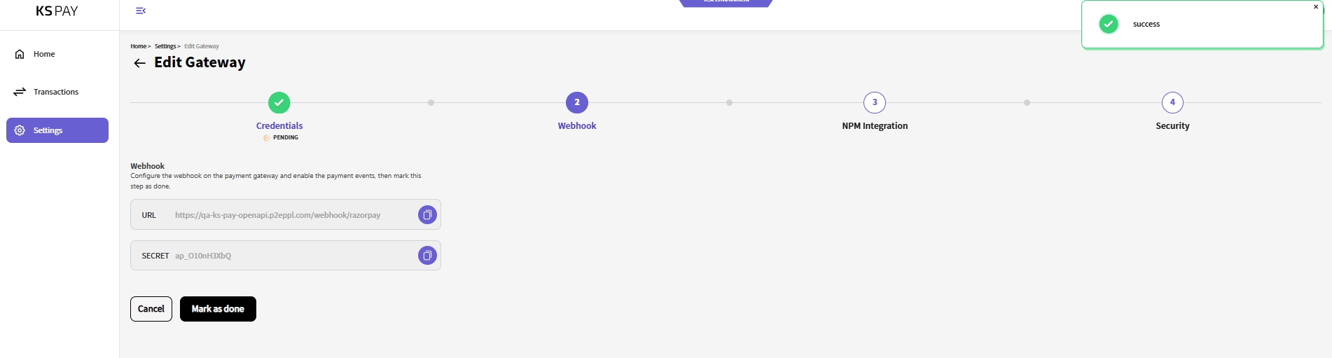 For Configuring Webhook: Refer How to Configure Webhook on KS Pay