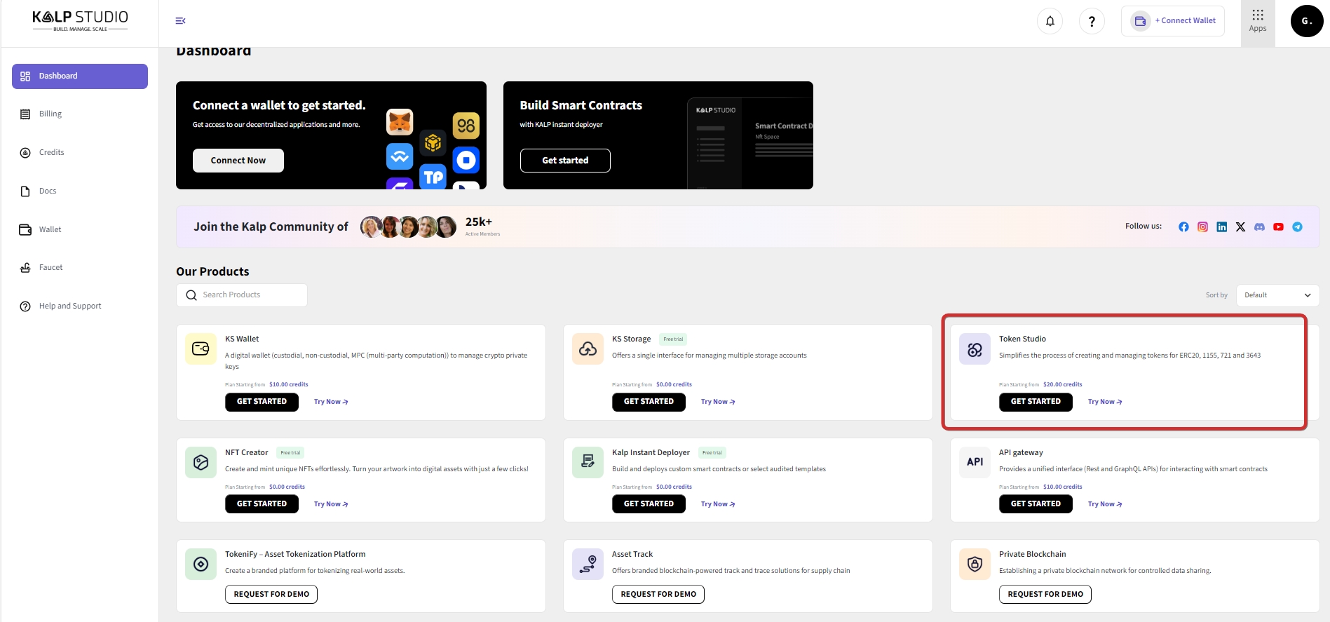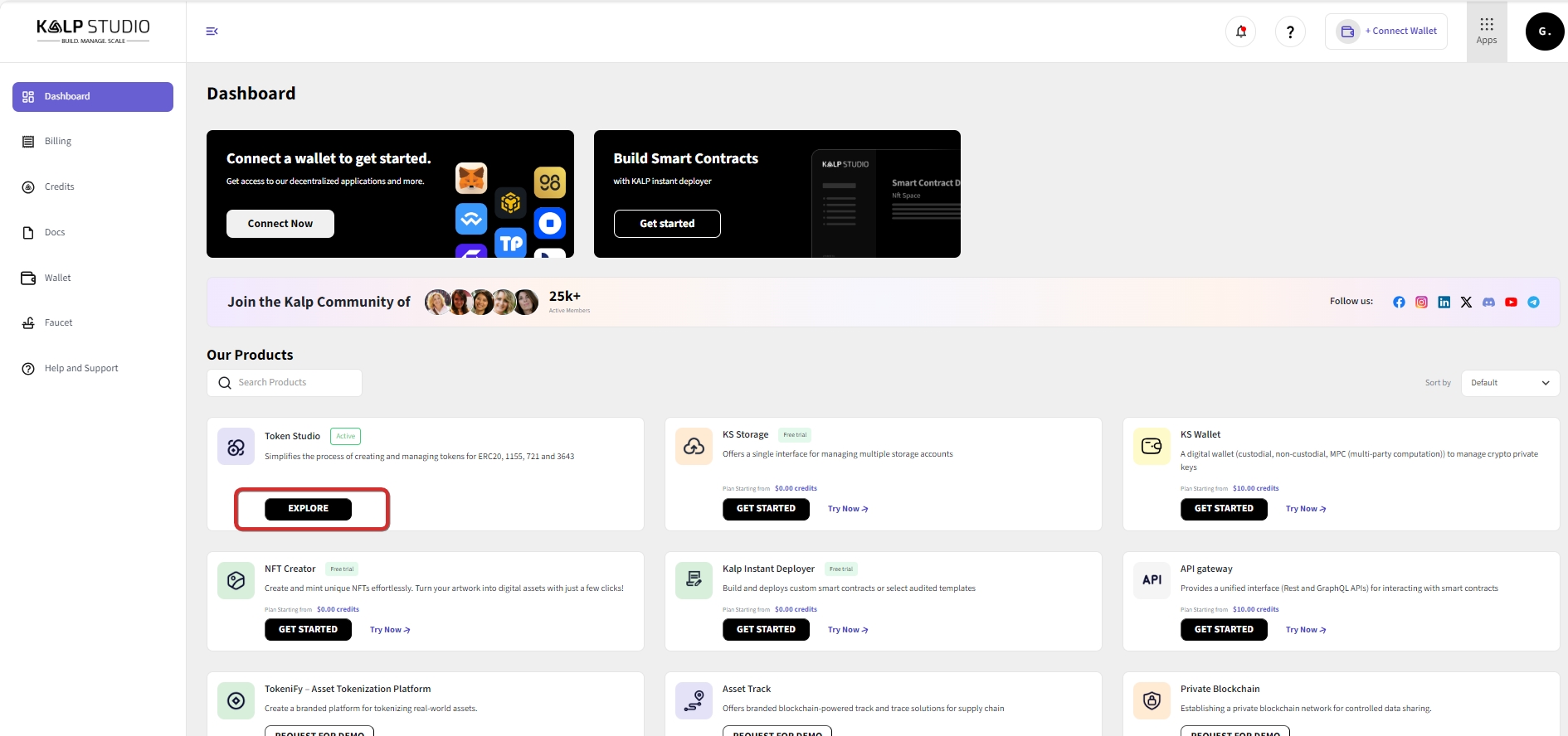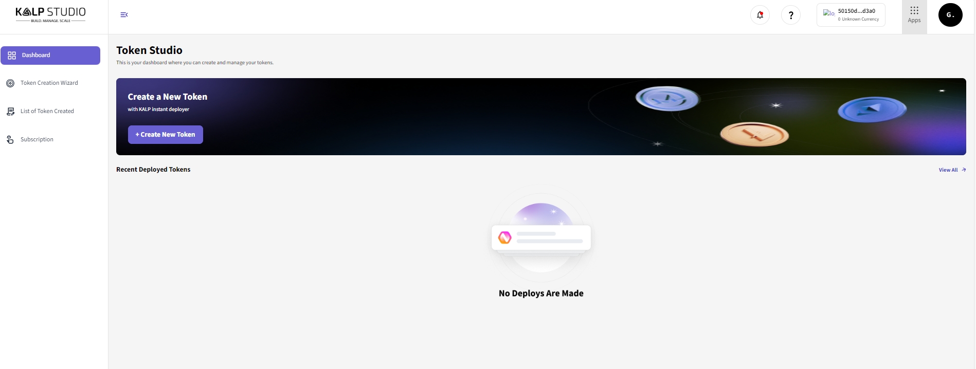 Log in to your Kalp Studio account. You will be directed to your Dashboard.