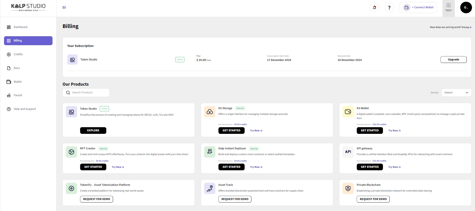 An active subscription for Token Studio, API Gateway and Kalp Instant Deployer