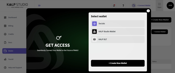A connected Kalp DLT wallet.
