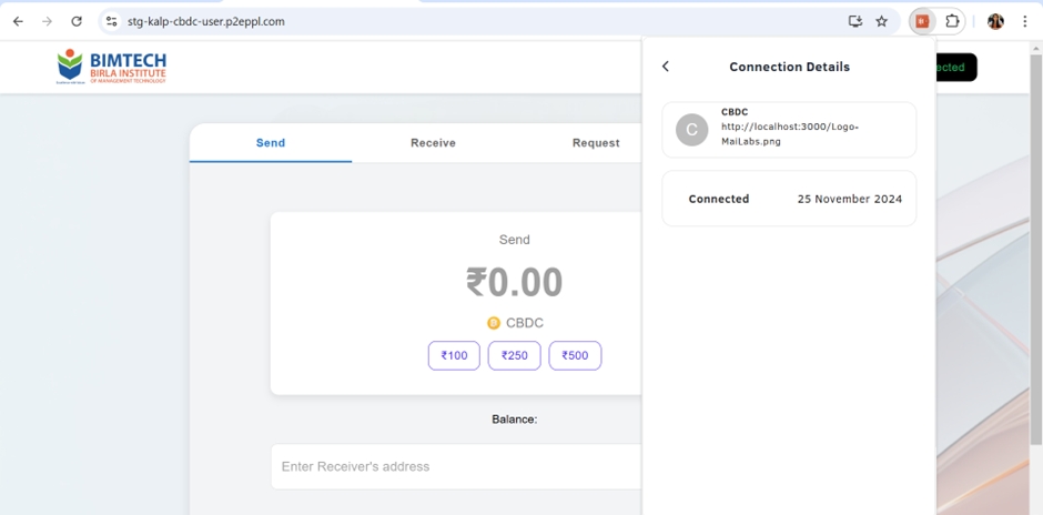 A pop-up in the Kalp Wallet extension will ask for your permission to connect to the DApp.