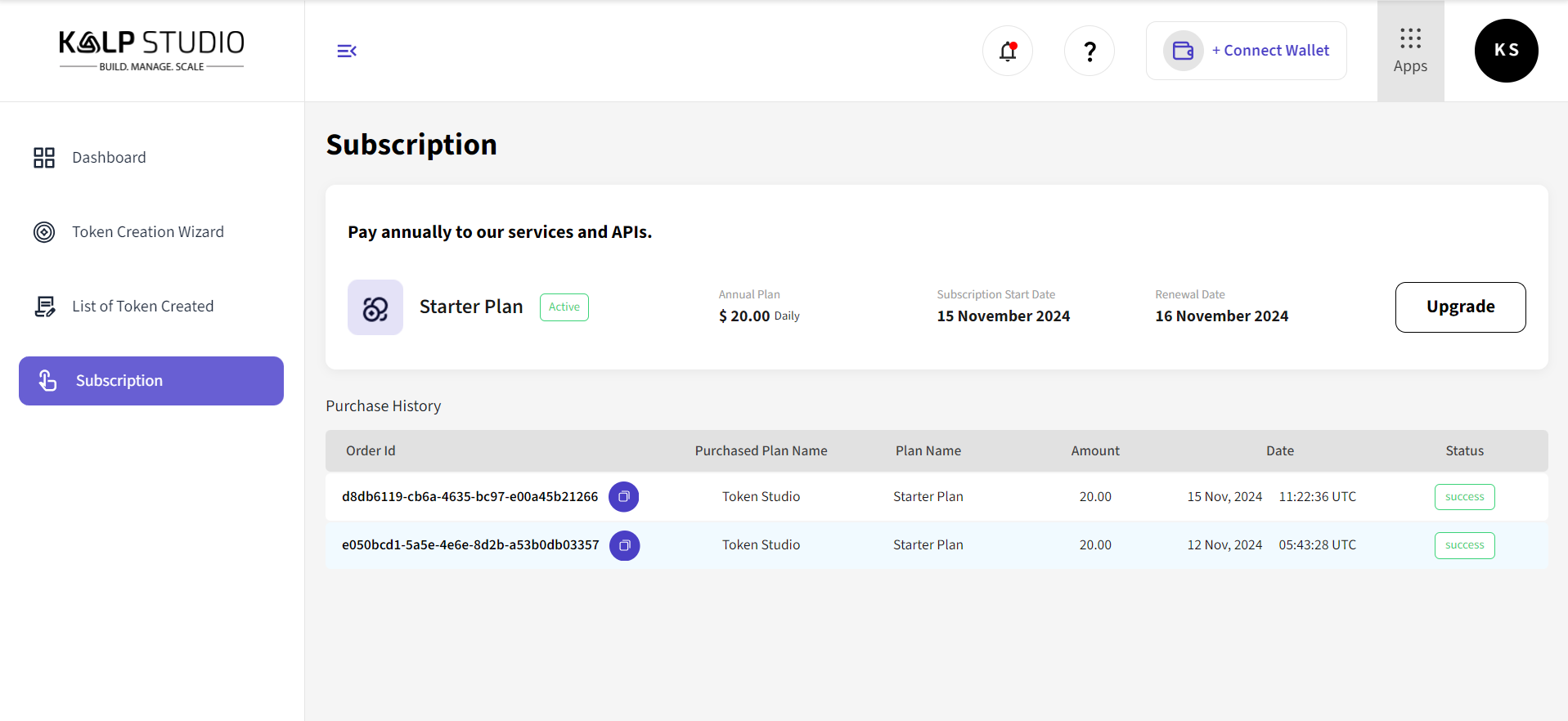 How to View Subscription Details for Token studio on Kalp Studio